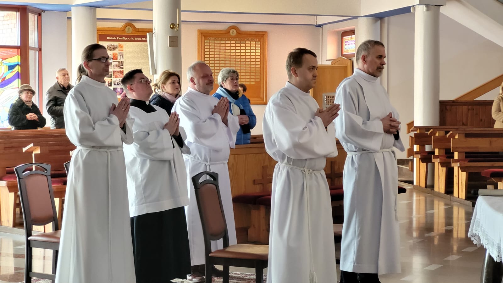 Po kazaniu miały miejsce obrzędy ustanowienia nowych szafarzy nadzwyczajnych, których przedstawił ks. Marcin Lech. Posługę przyjęli: